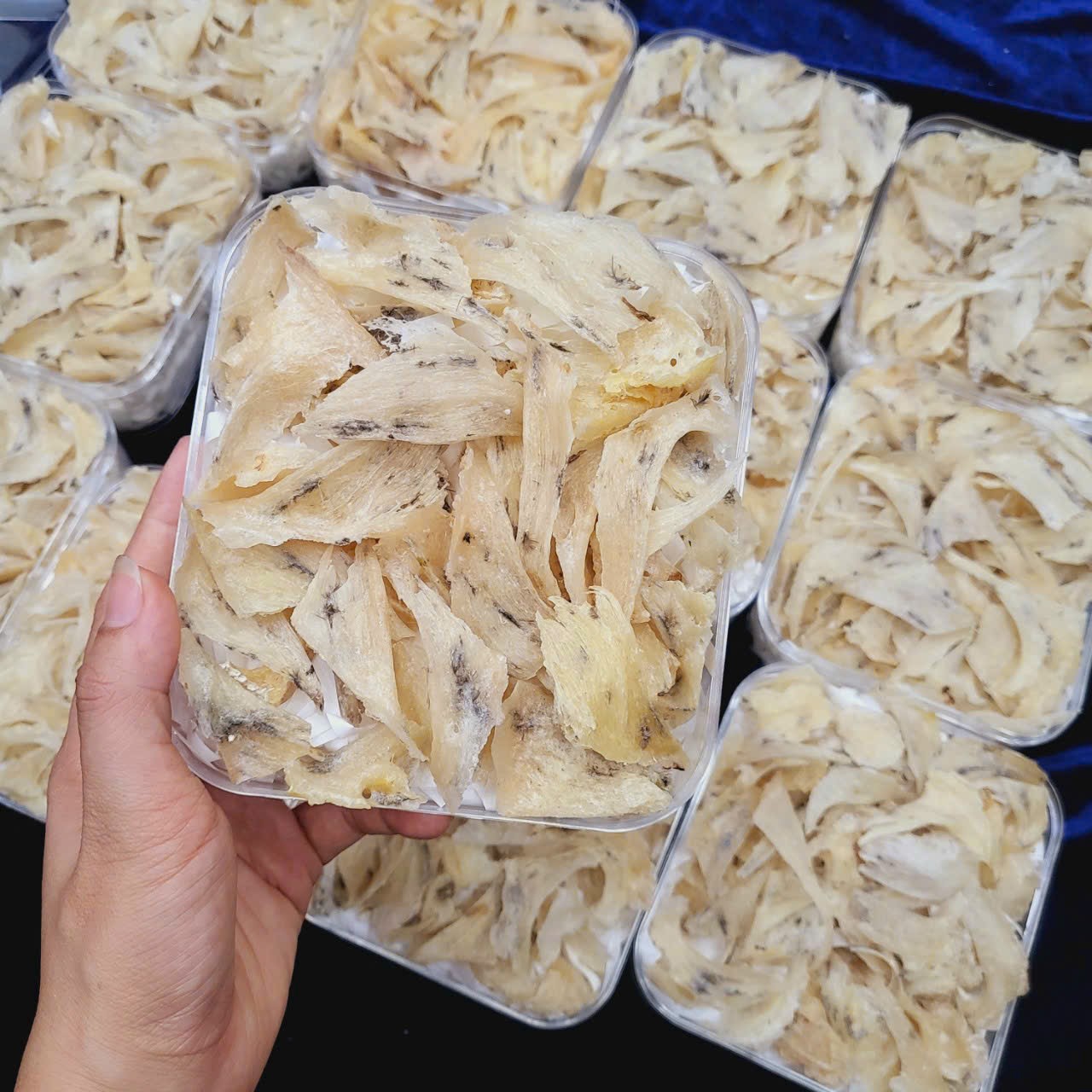 Ưu điểm: Chân yến là phần rìa 2 bên tổ yến, phần chắc nhất bám vào vách đá, gỗ, rất đặc cứng nên ăn dai và giòn. Chân yến thô thì ít lông và dễ nhặt.