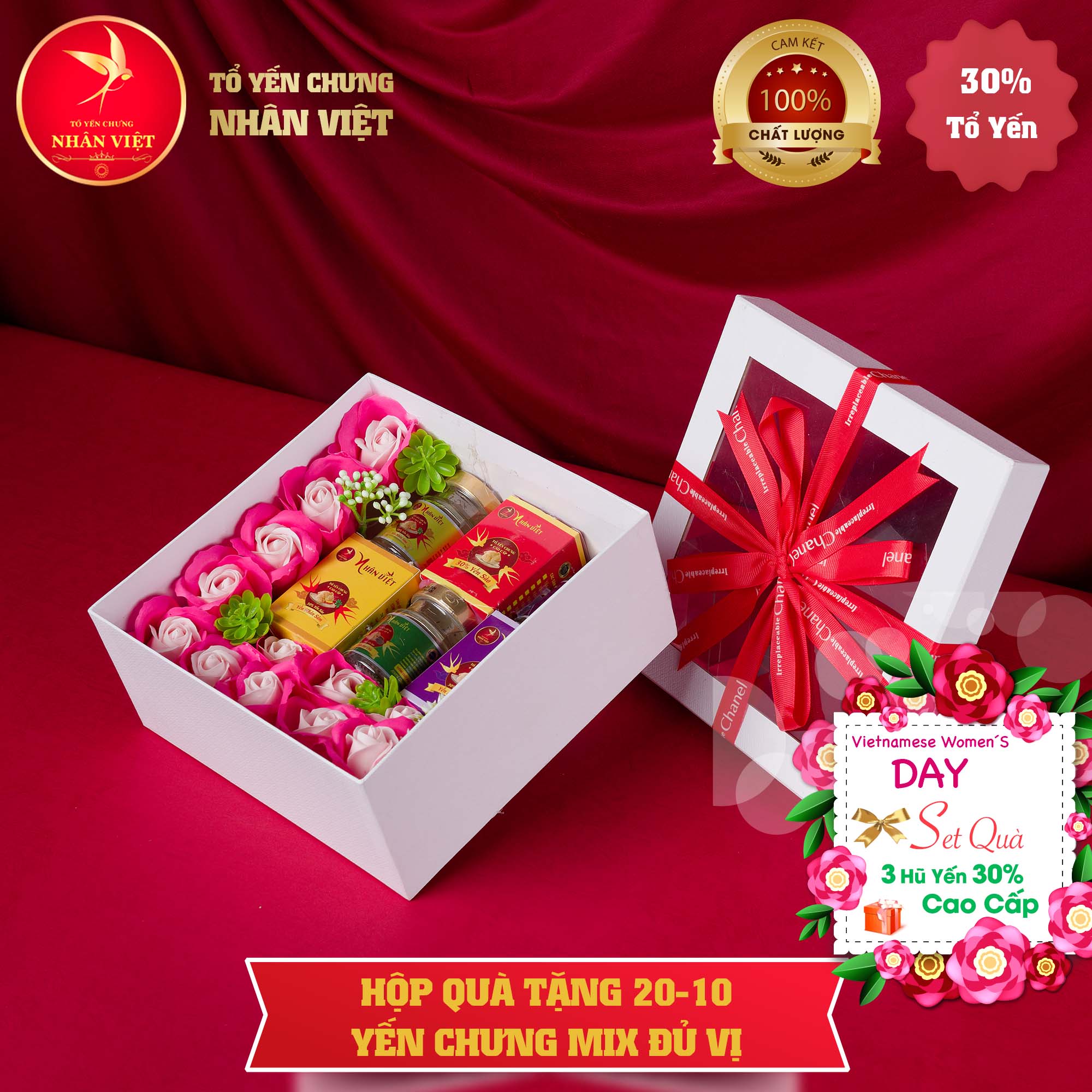 ***Hộp quà tặng yến sào NHÂN VIỆT - Món quà tinh tế và ý nghĩa cho ngày 20/10, thể hiện sự quan tâm và trân trọng của bạn dành cho những người phụ nữ đặc biệt trong cuộc đời.