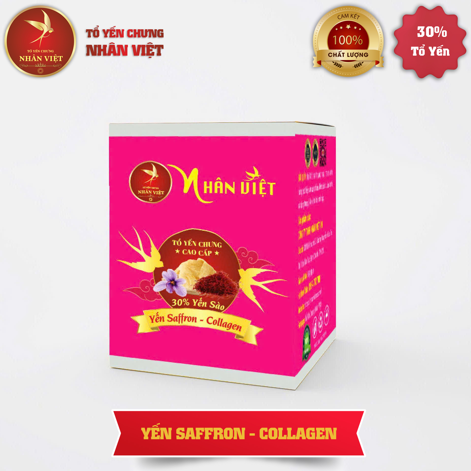 Yến hũ Saffron - Collagen Nhân Việt 30% yến là một món ăn được chế biến từ tổ yến sào, saffron và collagen. Đây là món ăn rất tốt cho sức khỏe, giúp bổ sung dinh dưỡng, tăng cường sức đề kháng và giúp đẹp da.