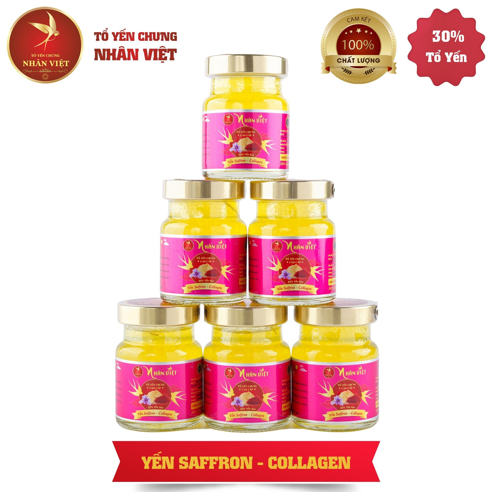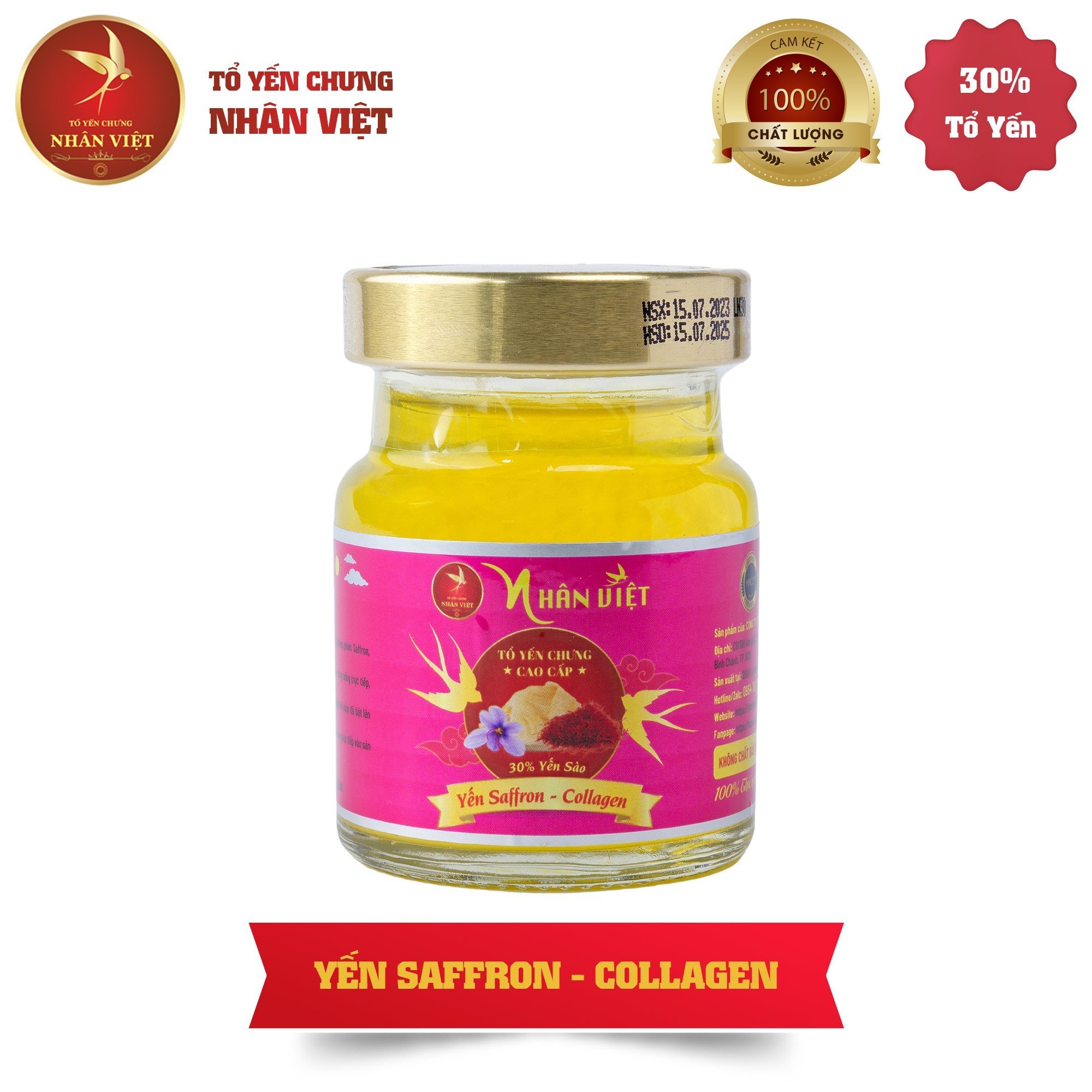 Yến Sào Chưng Saffron Collagen Nhân Việt 30% Yến 70ml / Hũ