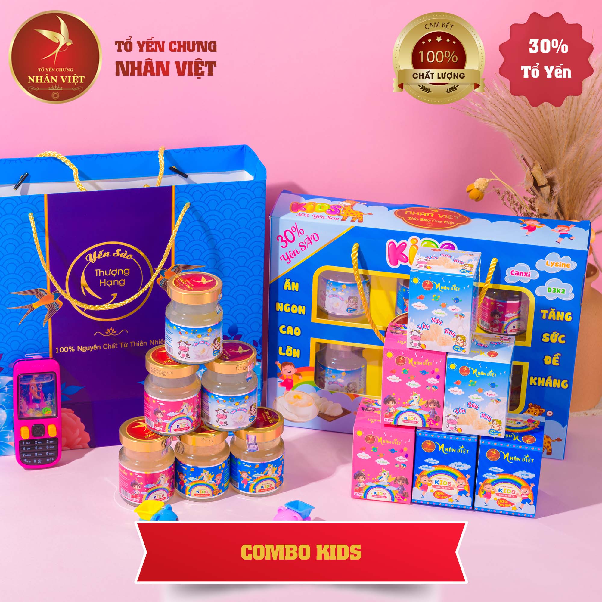 - Yến hũ kids Nhân Việt 30% yến dành cho trẻ em là một món ăn được chế biến từ 30% tổ yến thô nguyên chất chưng cất cùng đường phèn và các loại vitamin khoáng chất cần thiết cho trẻ phát triển như: Canxium, Lysine, Taurine,và Các Vitamin D3, K2, …