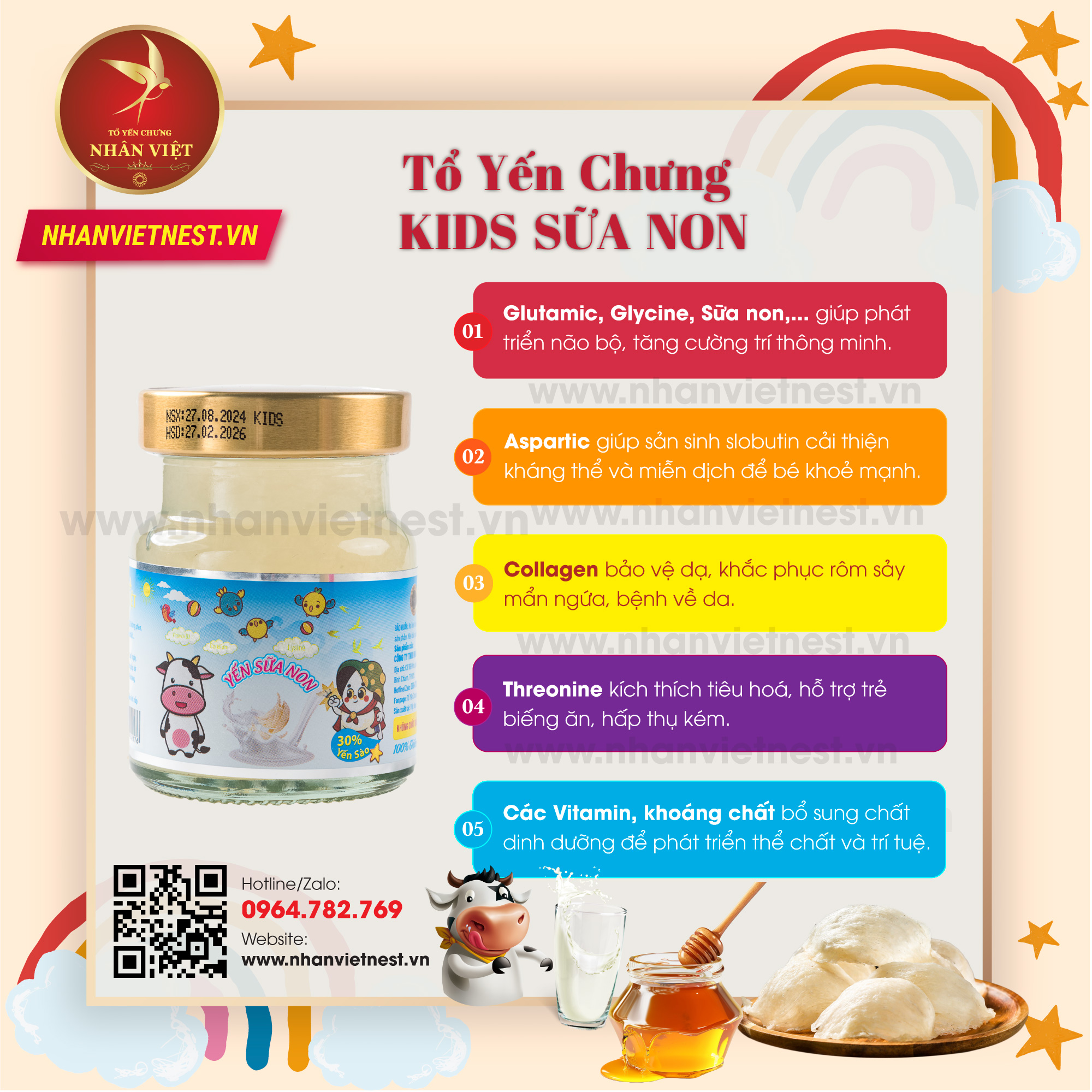 Công dụng yến sào chưng sẵn Nhân Việt KIDS Sữa non cho bé.