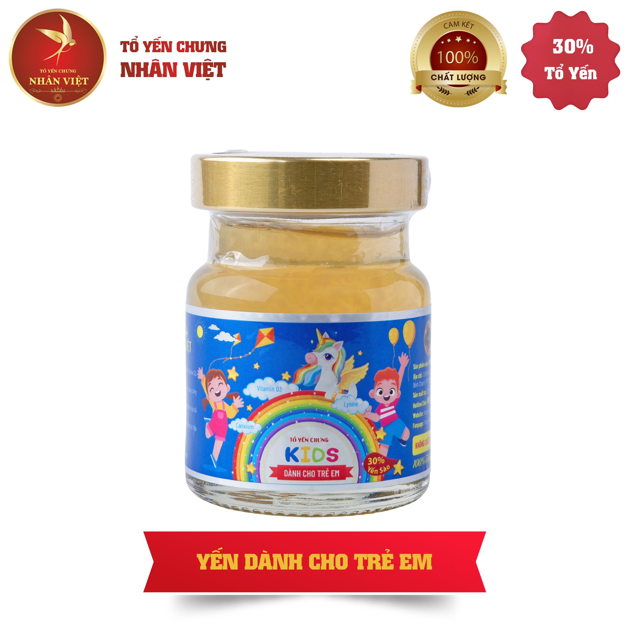 Yến hũ kids Nhân Việt 30% yến dành cho trẻ em là một món ăn được chế biến từ 30% tổ yến thô nguyên chất chưng cất cùng đường phèn và các loại vitamin khoáng chất cần thiết cho trẻ phát triển như: Canxium, Lysine, Taurine,và Các Vitamin D3, K2, …