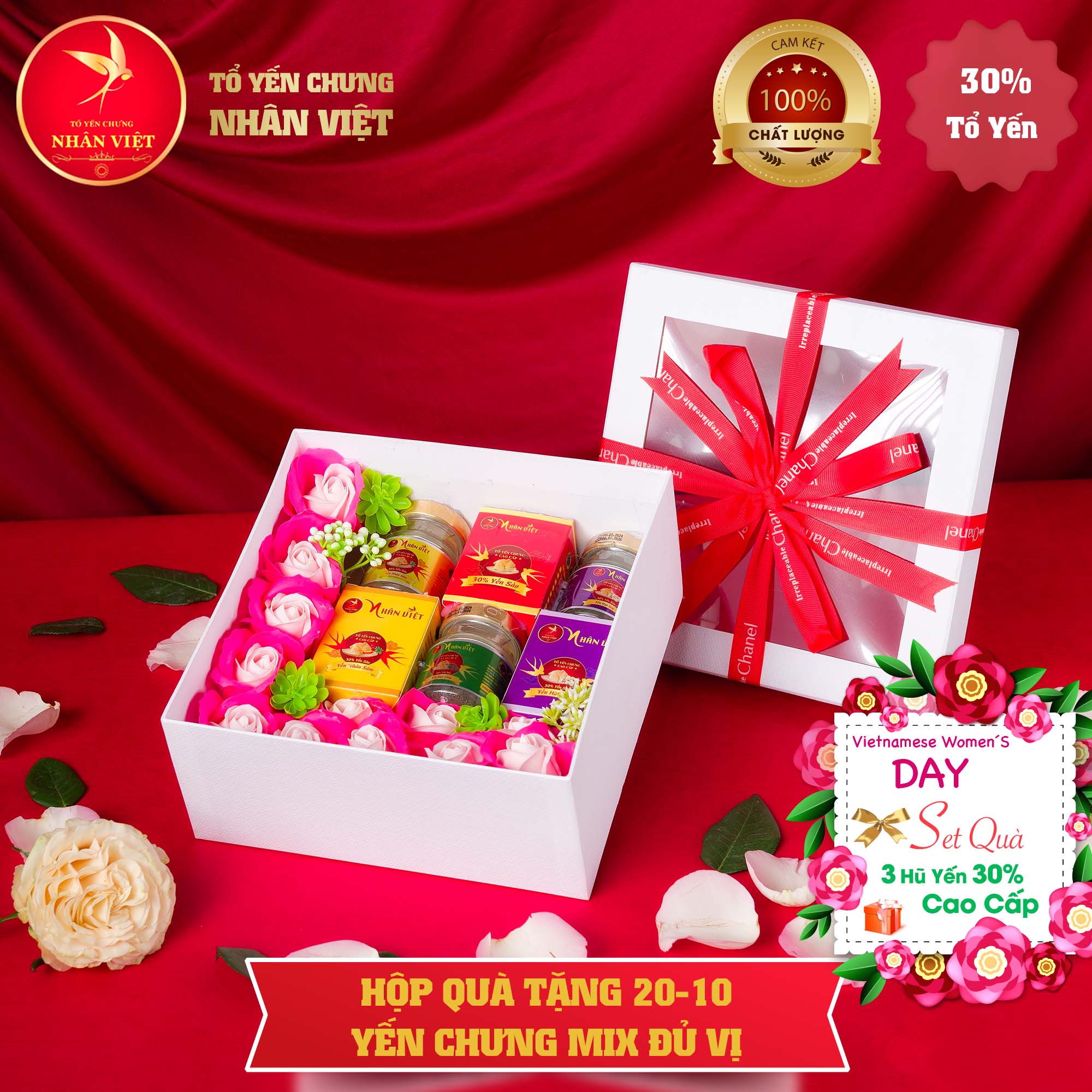 ***Hộp quà tặng yến sào NHÂN VIỆT - Món quà tinh tế và ý nghĩa cho ngày 20/10, thể hiện sự quan tâm và trân trọng của bạn dành cho những người phụ nữ đặc biệt trong cuộc đời.