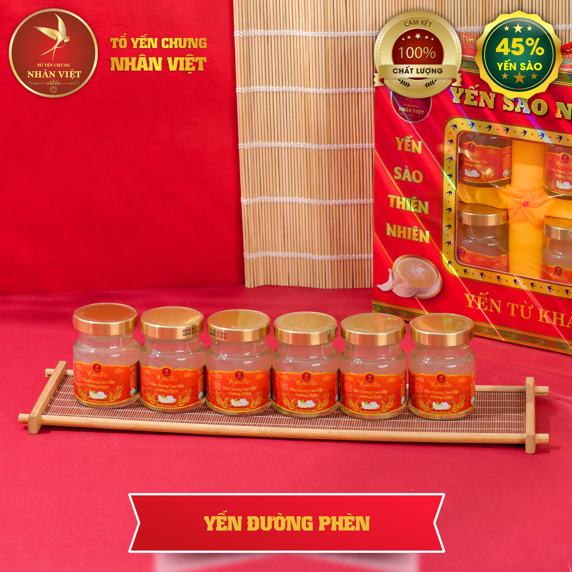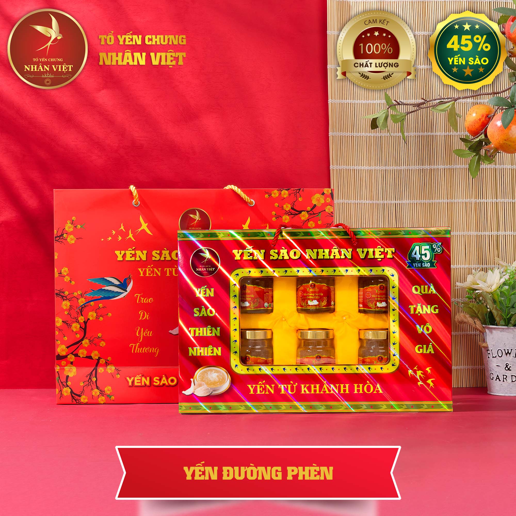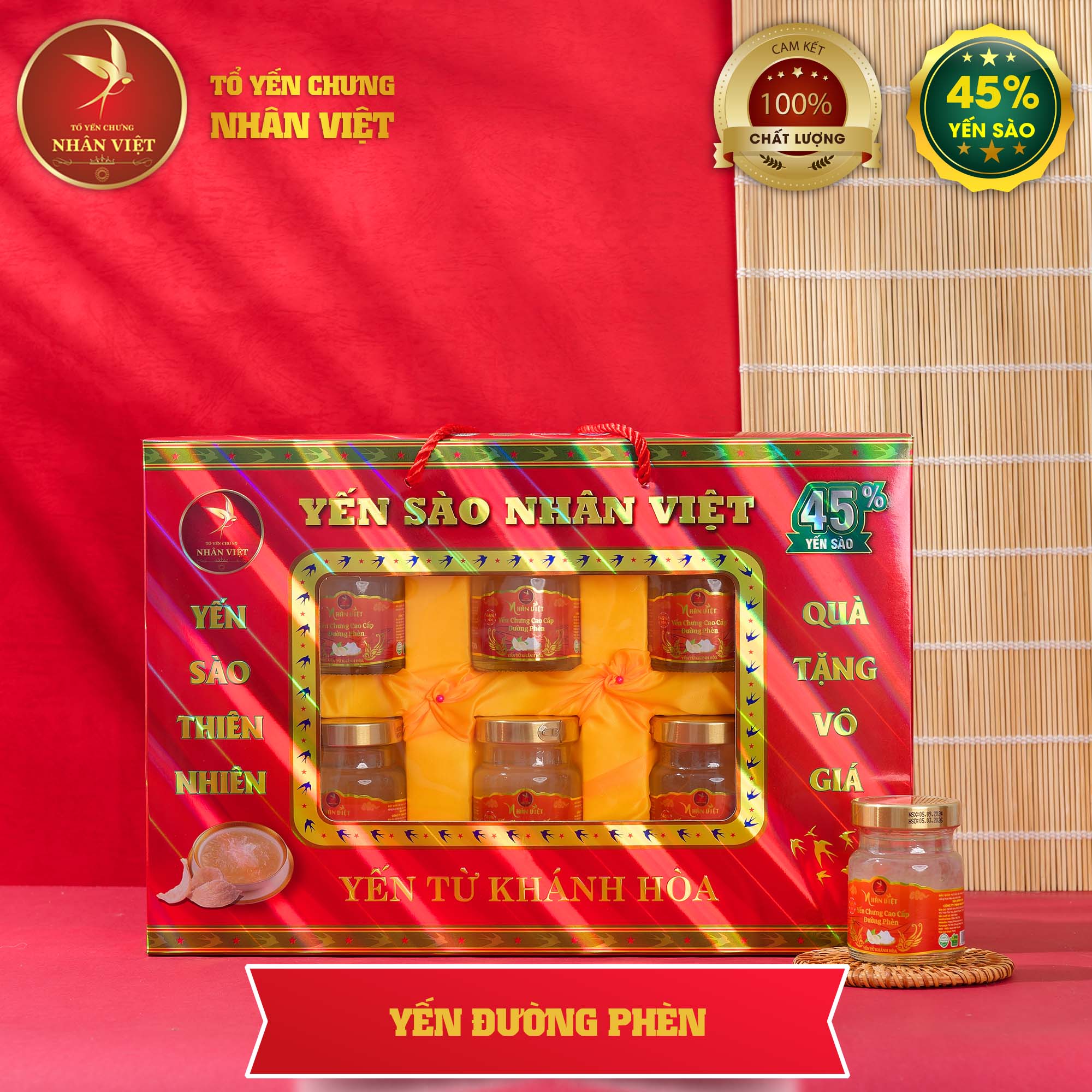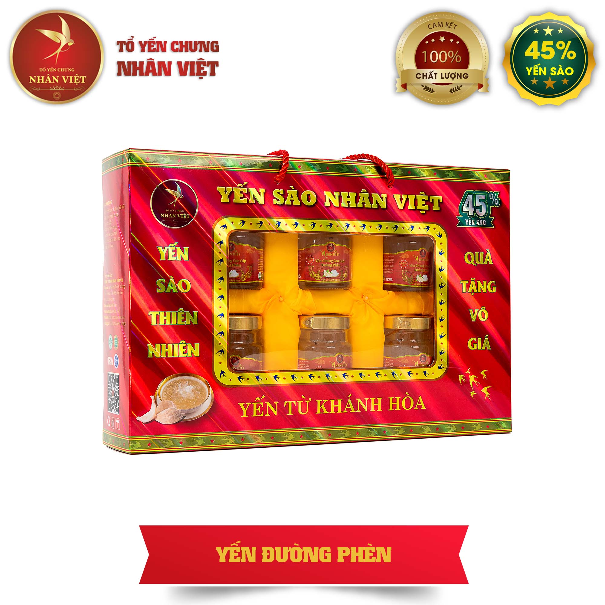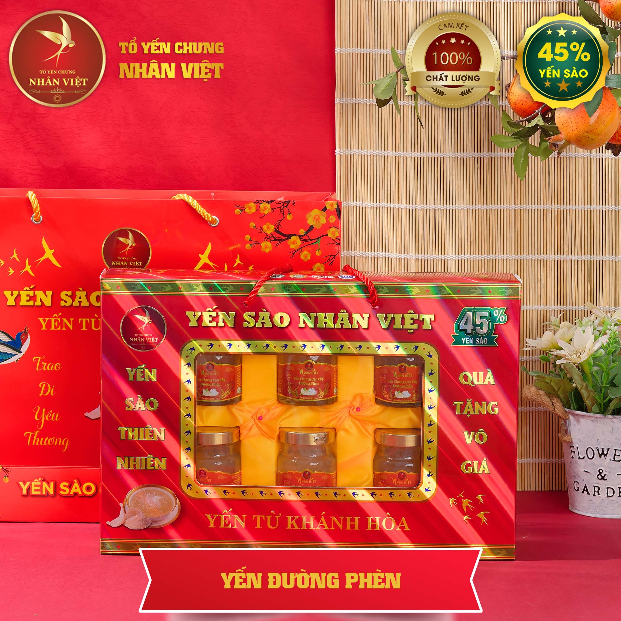 Hộp Quà Cao Cấp 6 Hũ Yến Sào Chưng Đường Phèn Nhân Việt 45% Yến