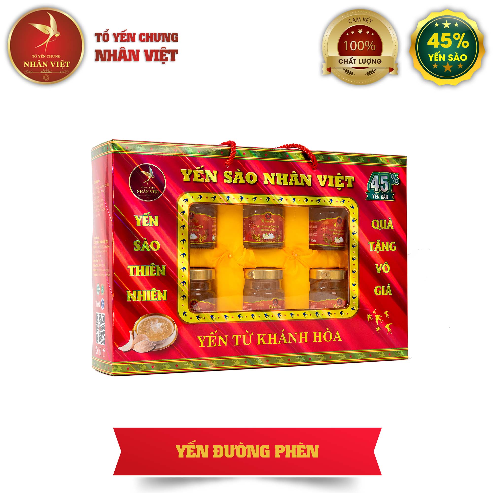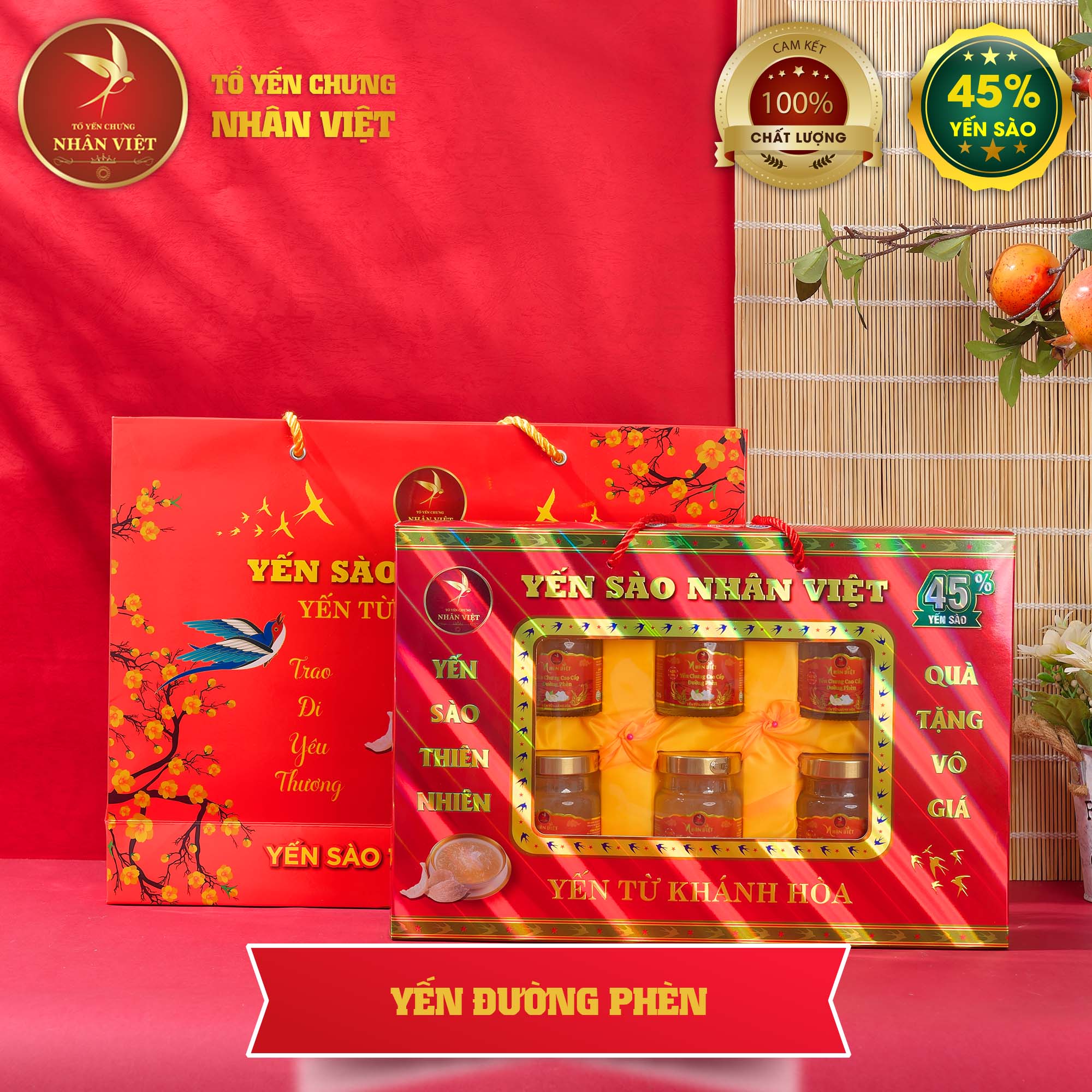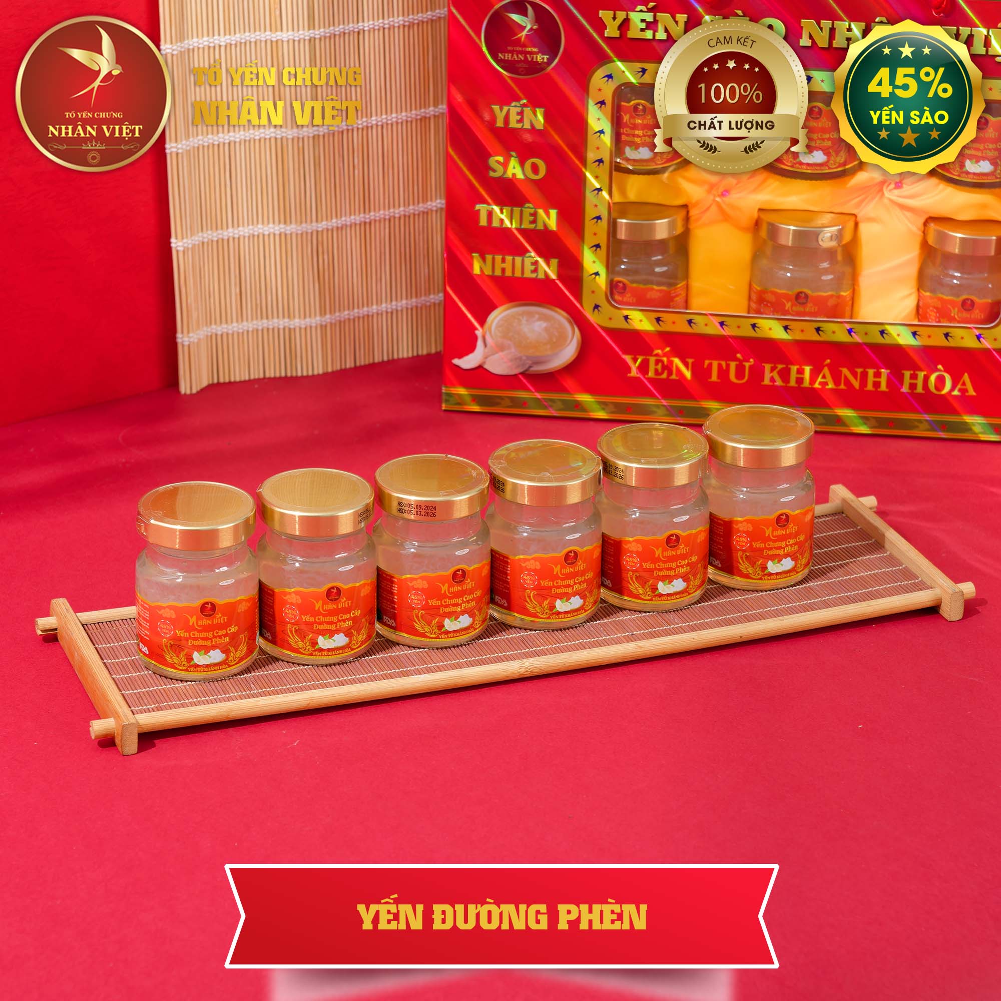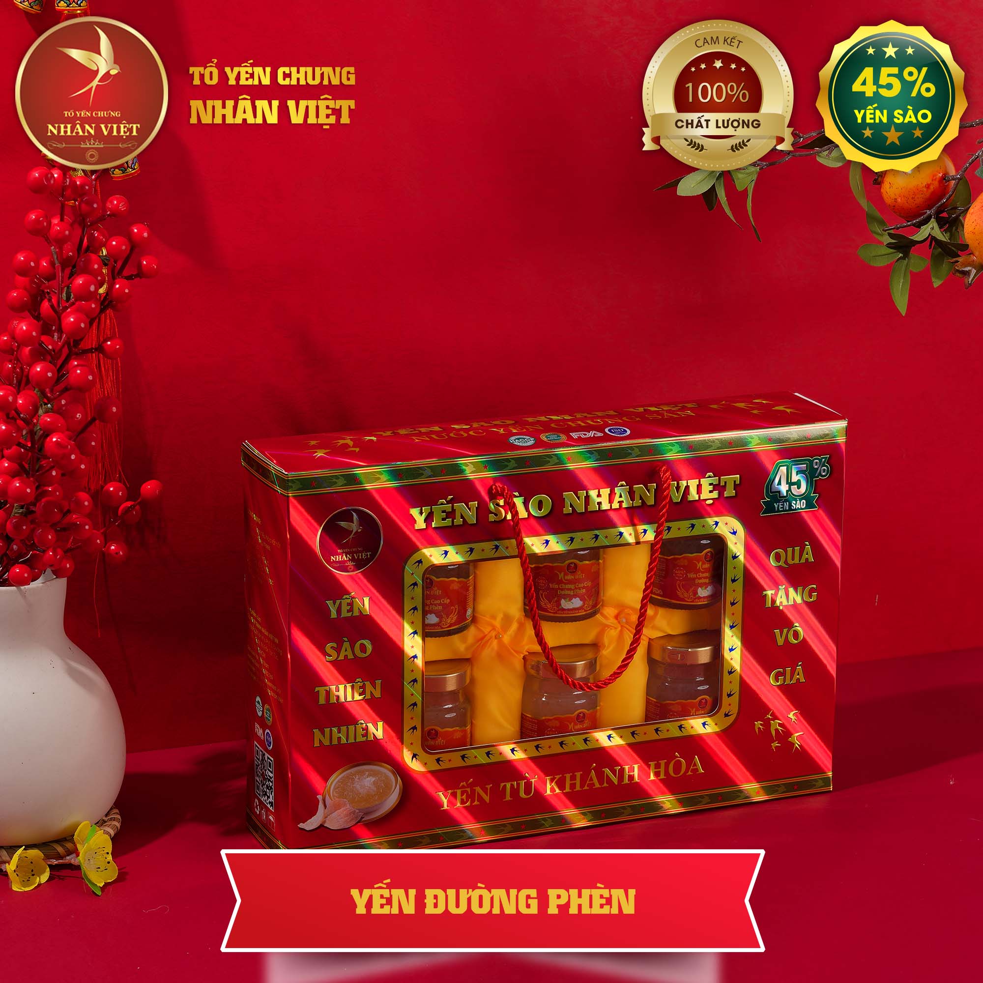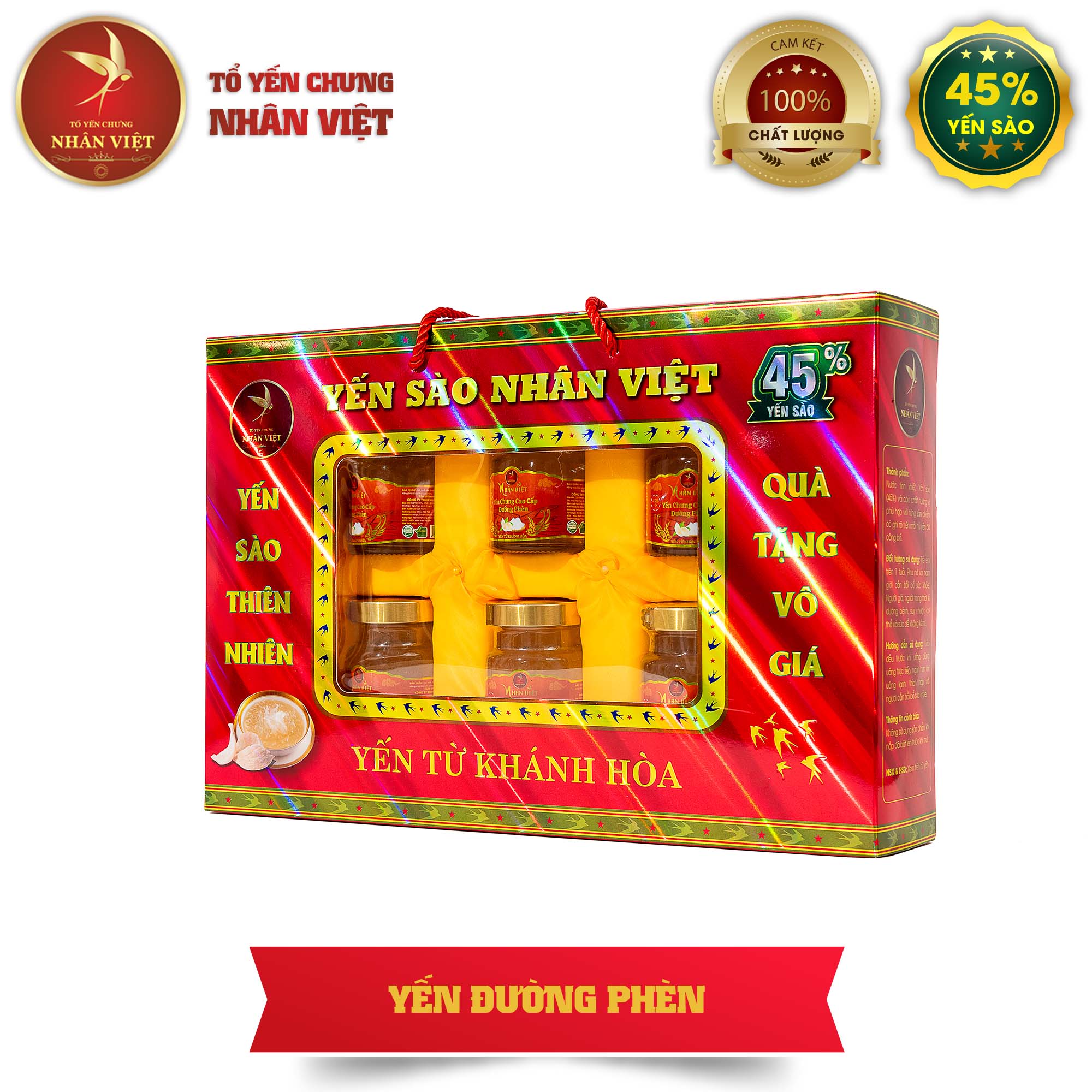 Hộp Quà Cao Cấp 6 Hũ Yến Sào Chưng Đường Phèn Nhân Việt 45% Yến