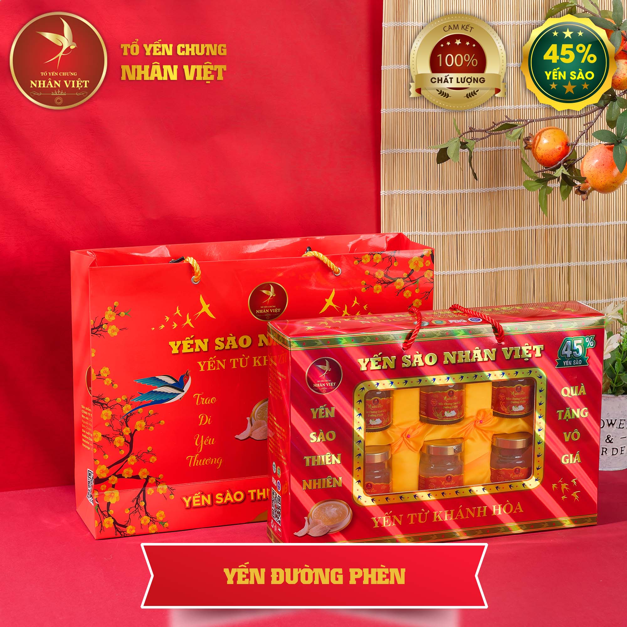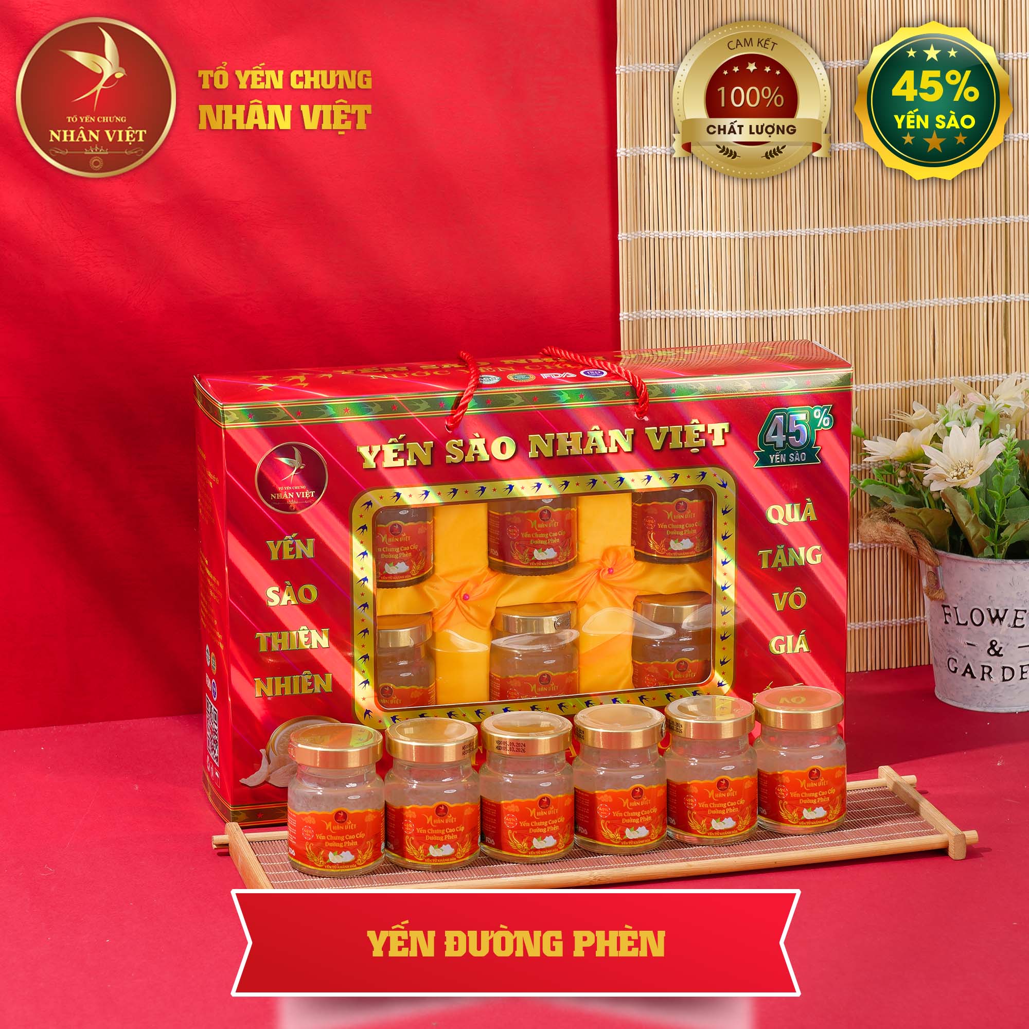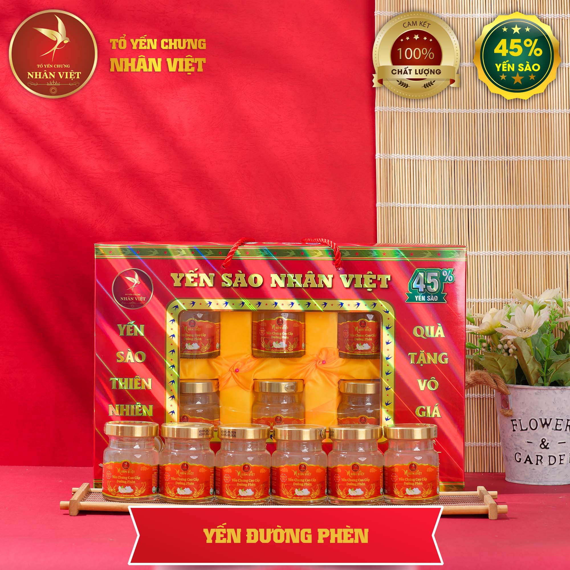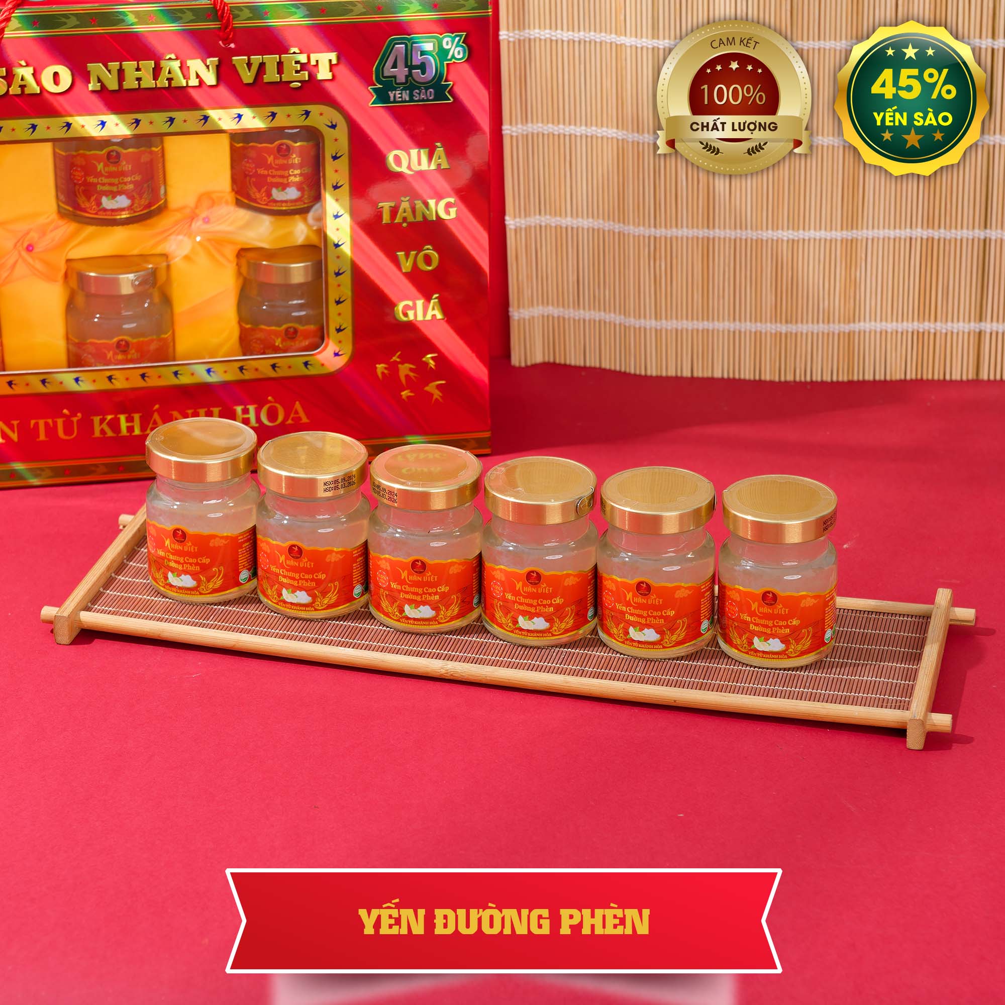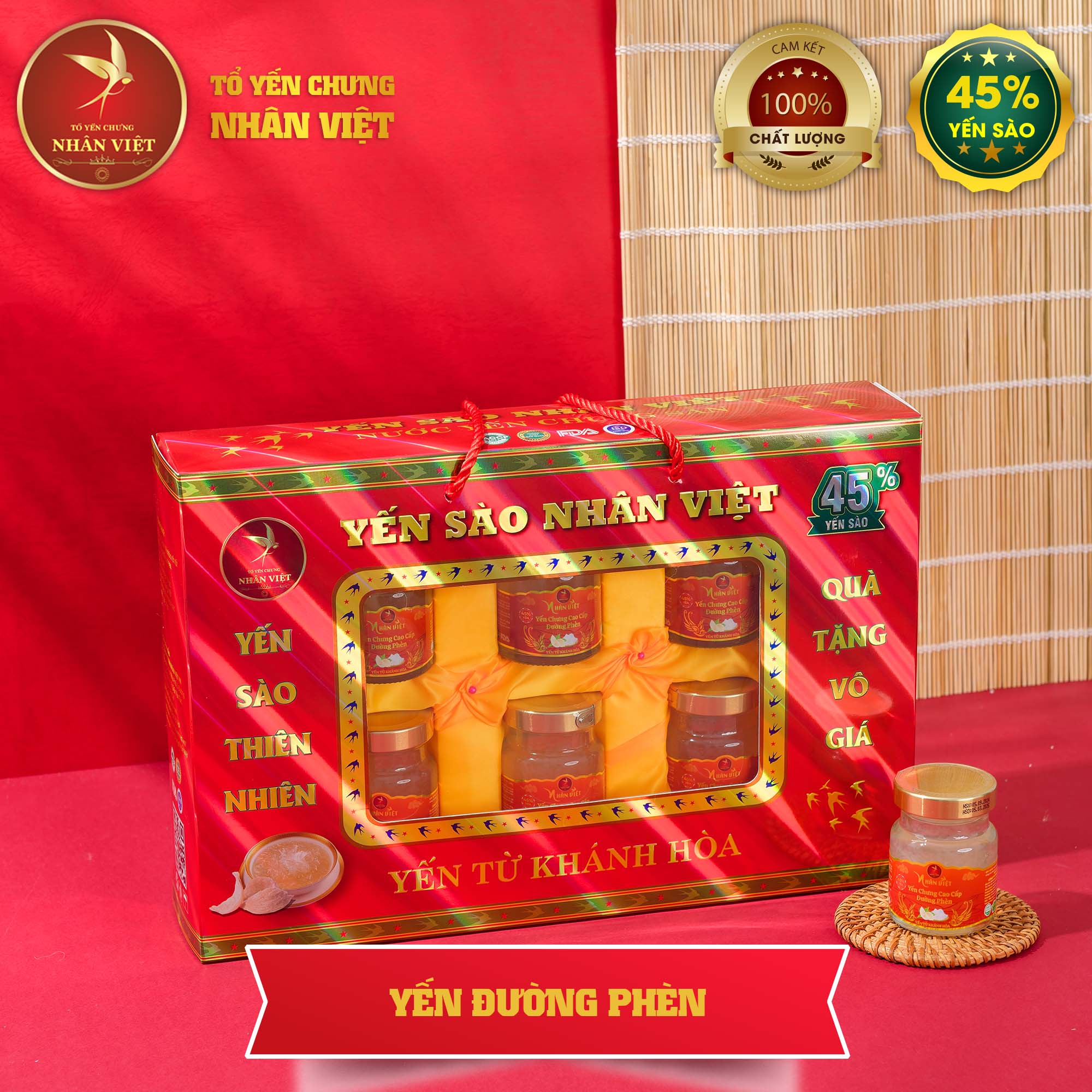 Hộp Quà Cao Cấp 6 Hũ Yến Sào Chưng Đường Phèn Nhân Việt 45% Yến
