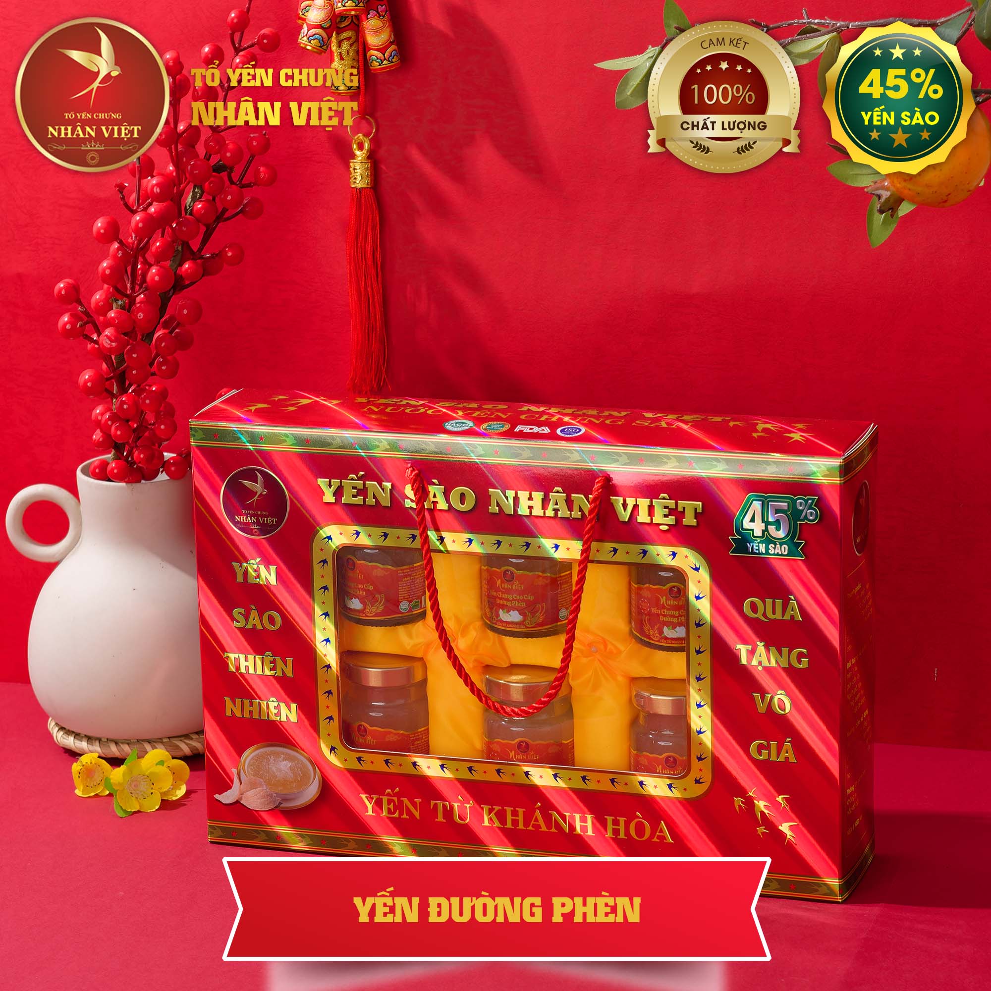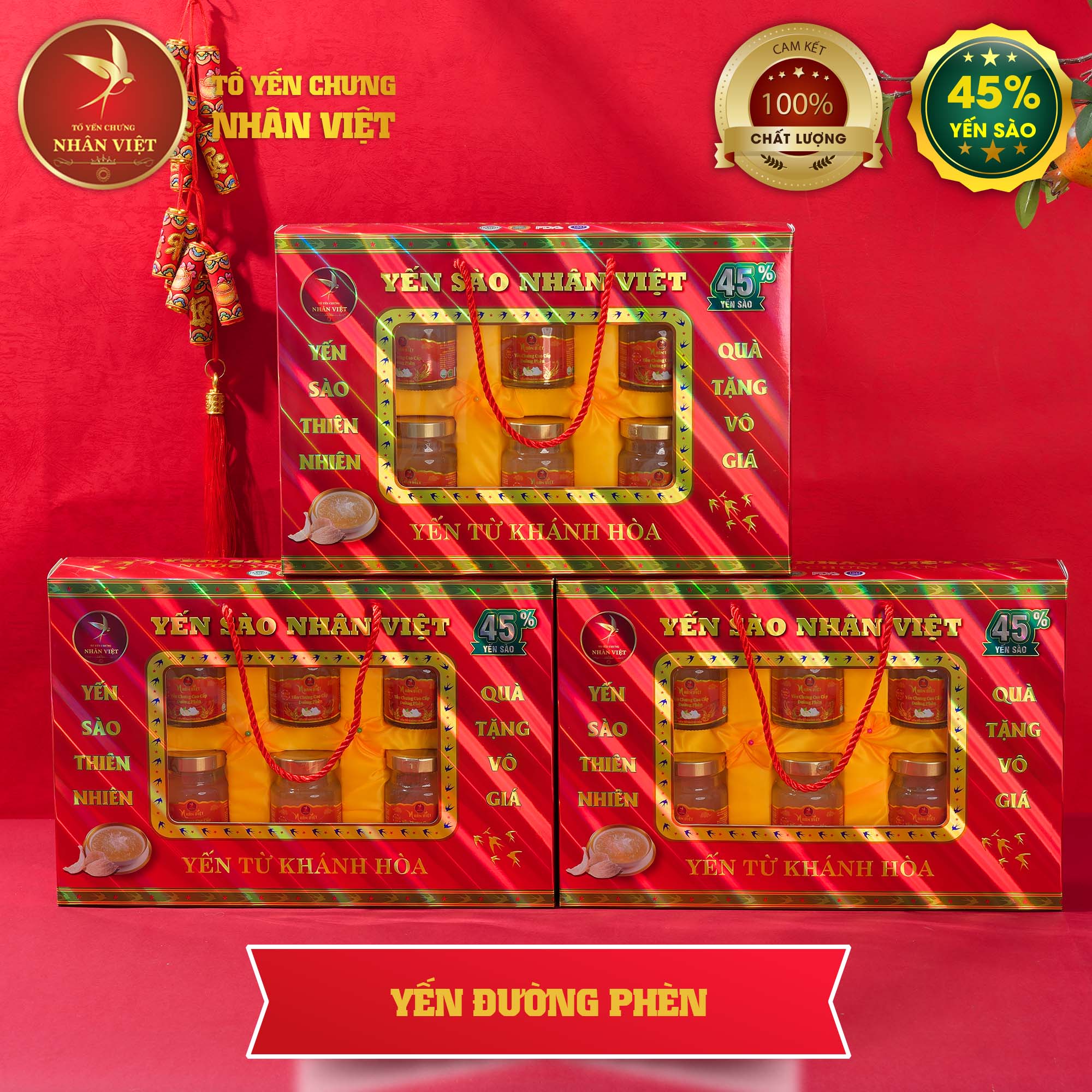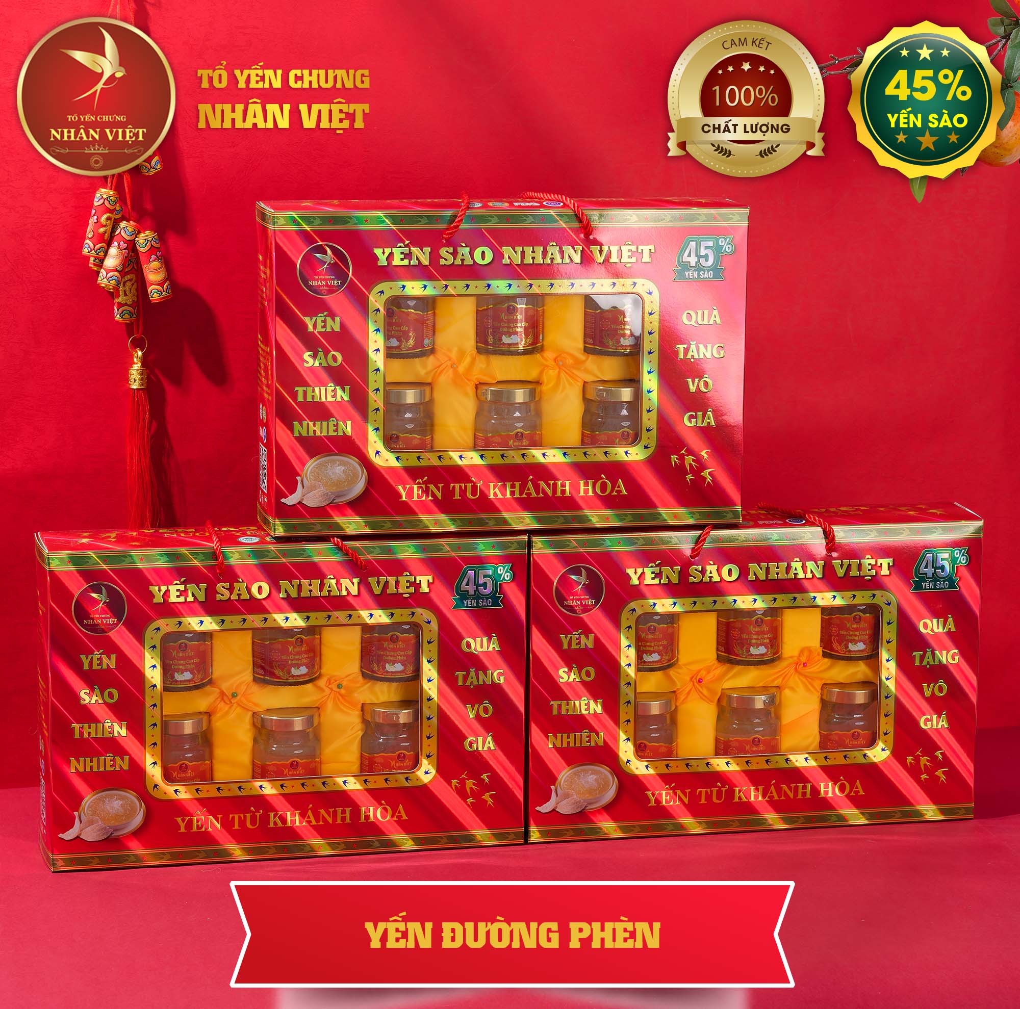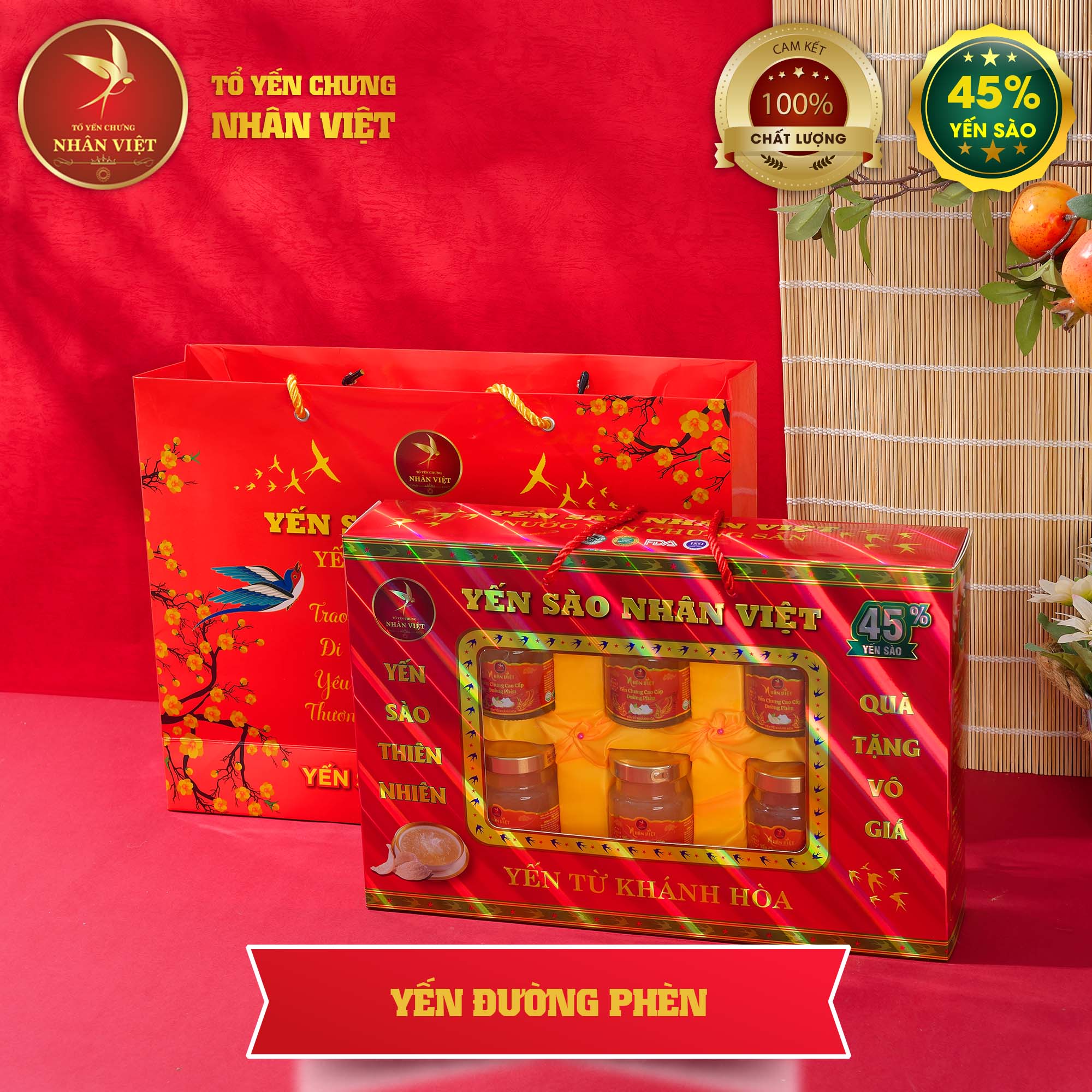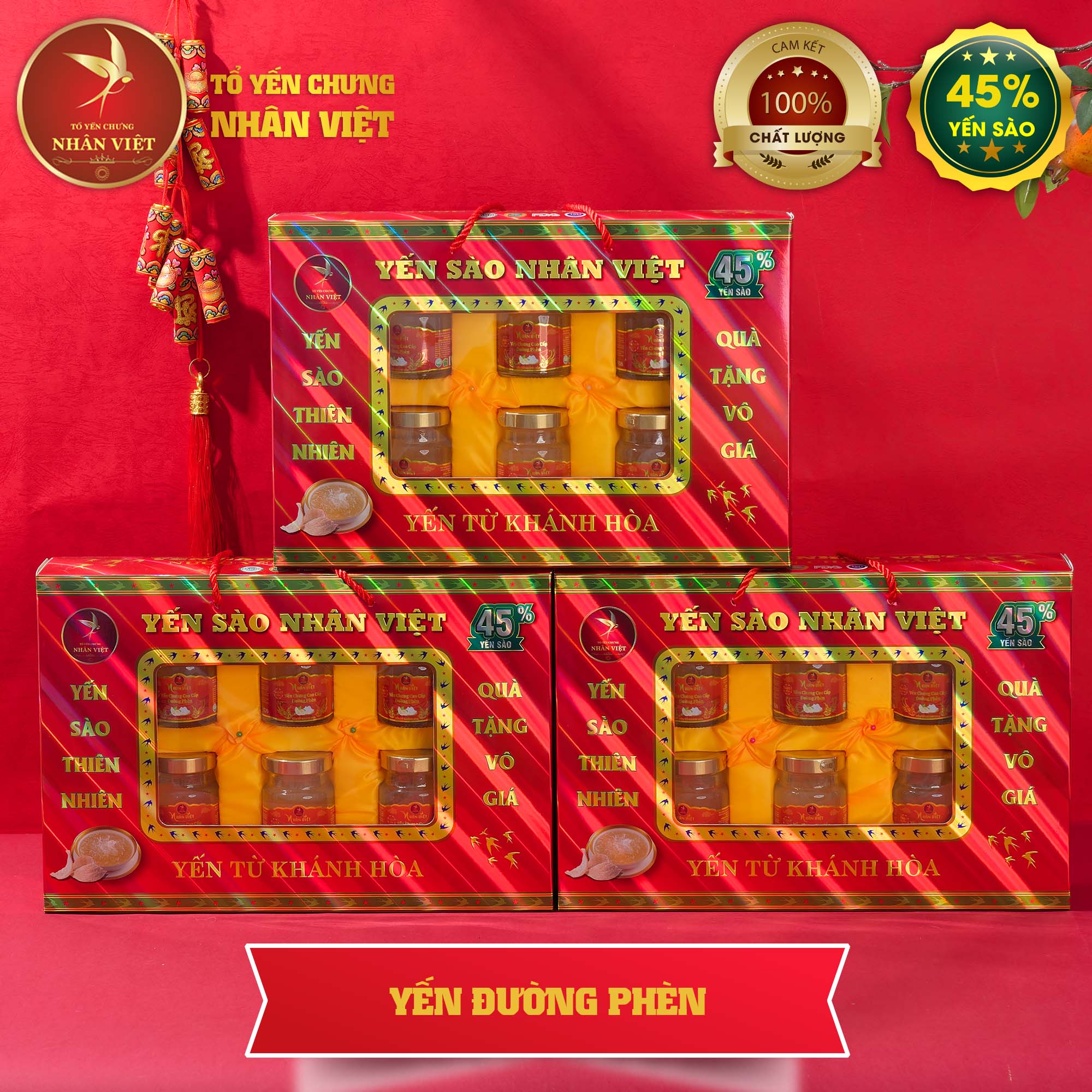 Hộp Quà Cao Cấp 6 Hũ Yến Sào Chưng Đường Phèn Nhân Việt 45% Yến