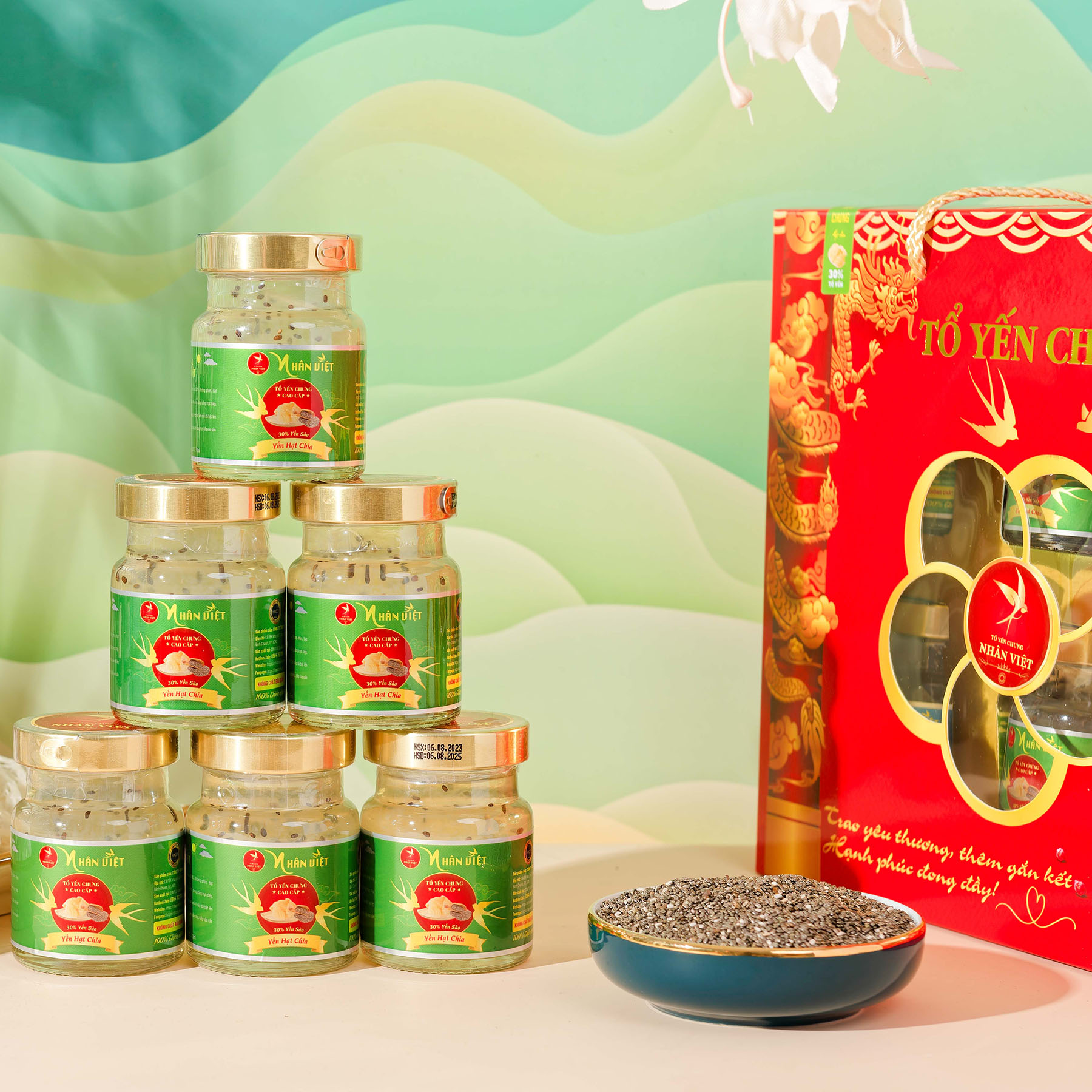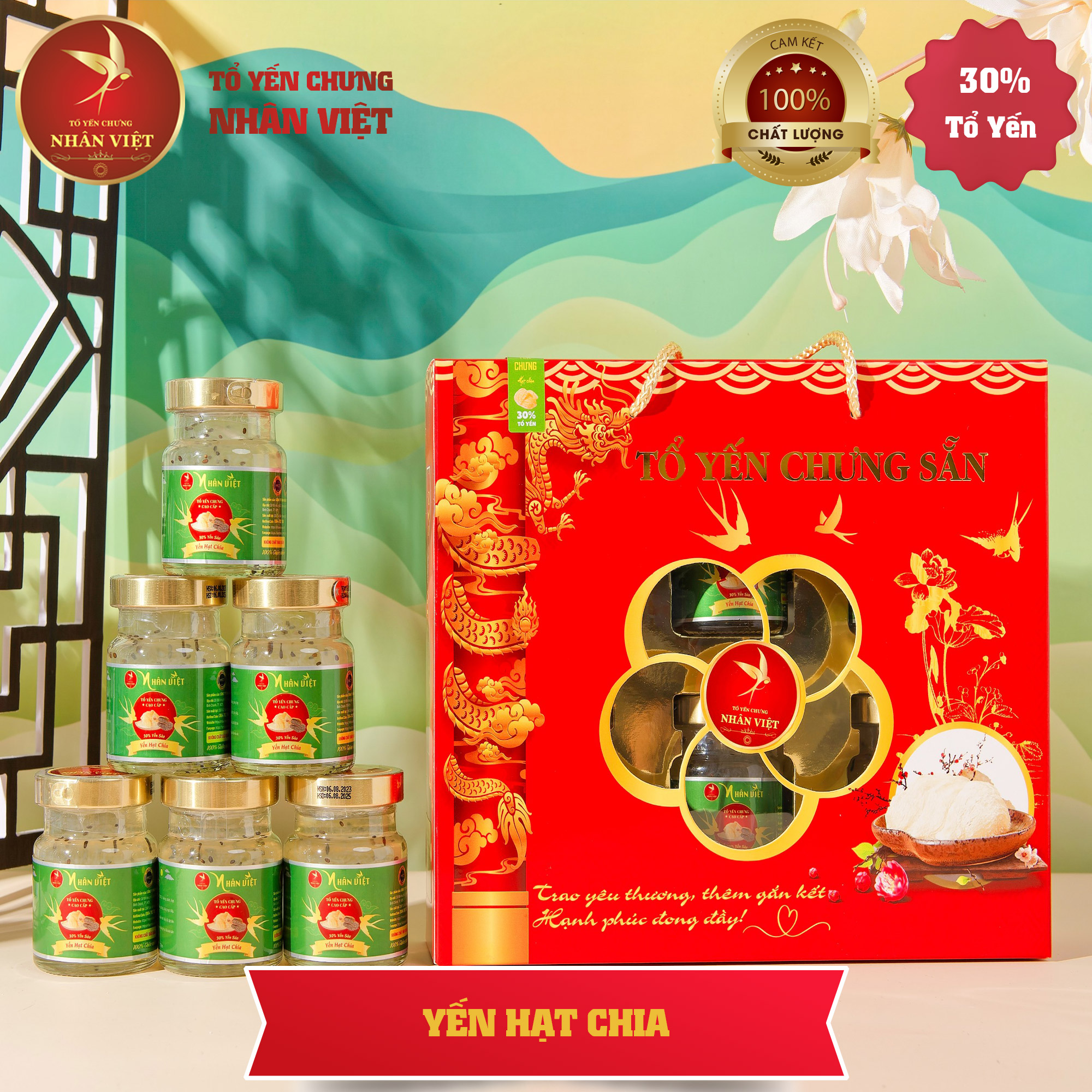 Lốc 6 Hũ Yến Sào Chưng Hạt Chia Nhân Việt 30% Yến